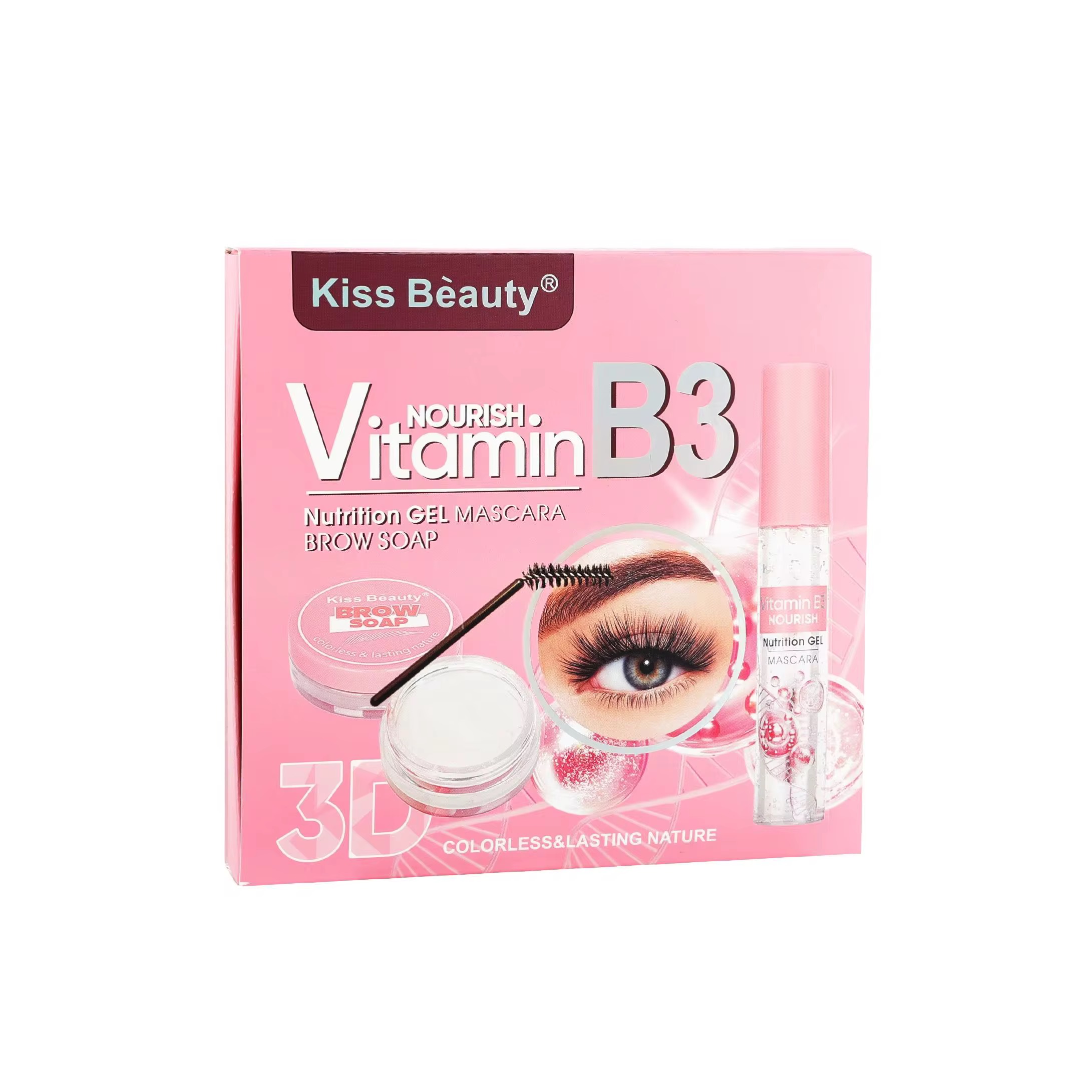 Kiss Beauty Vitamin B3 3D Brow Soap & Gel Mascara Box 📦 Includes: • Vitamin B3 Nutrition Gel Mascara for lashes & brows • Transparent Brow Soap for shaping and setting • Dual styling brush for precise application ✨ Features: • Nourishing formula promotes healthy, shiny brows & lashes • Long-lasting hold with a natural, full look • Non-sticky, easy to apply, and mess-free • Elegant packaging — perfect for daily use or as a gift