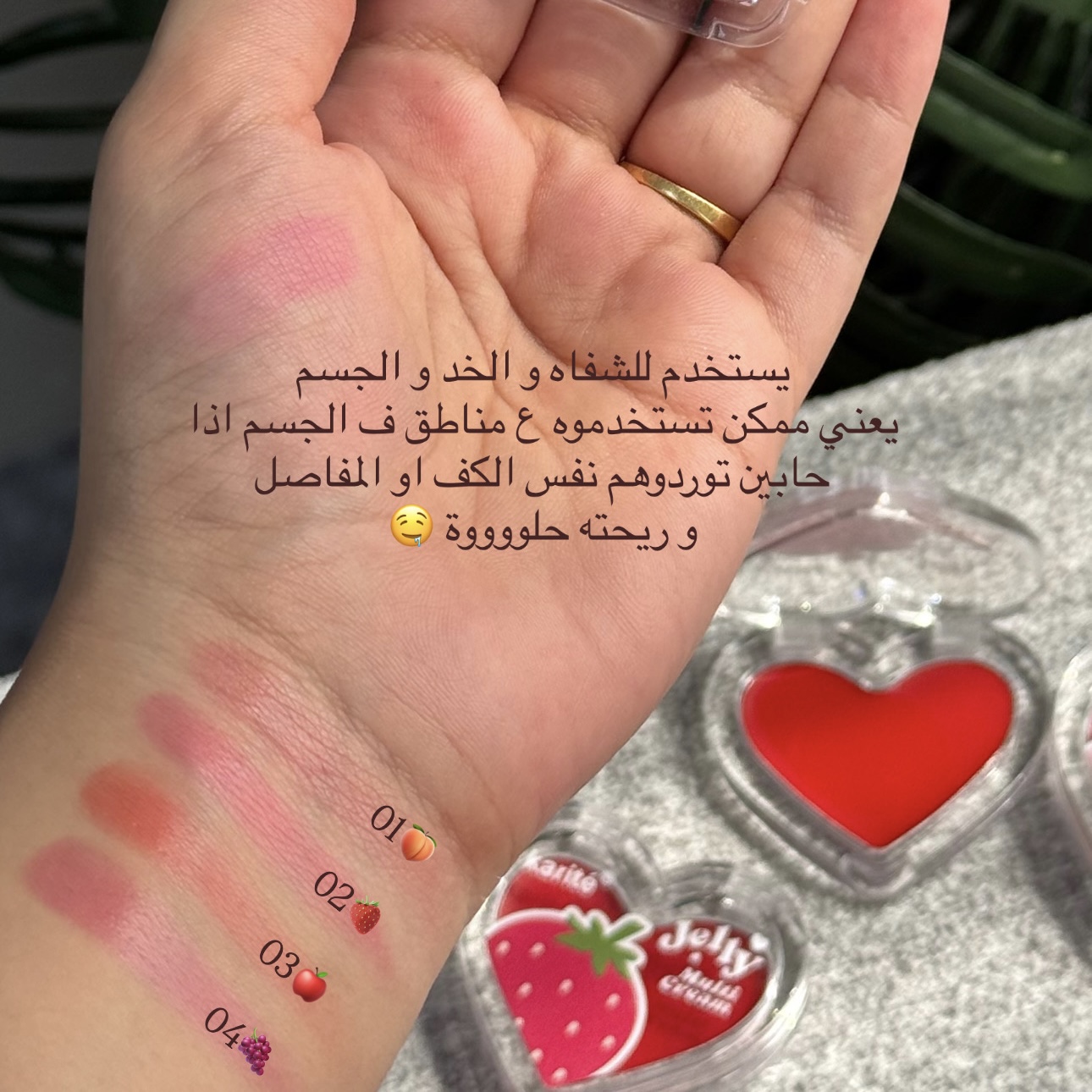 Jelly multi cream 🍑 Tint used for lips, cheeks & body gives natural look With fruit scents 🍑🍓🍎🍇 ✨full & natural ✨rosy & vibrant ✨moist & not sticky